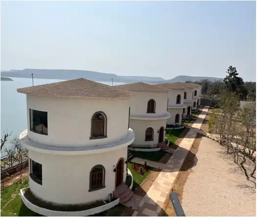The Narwar Lake Front Resort is located at Manikhera in Shivpuri, M.P. The project spans a total land area of 5 acres and features a built-up area of 25,567 sq. ft. the resort includes 60 rooms distributed across two phases, with 20 rooms in Phase I and 40 in Phase II. Guests have access to various amenities, including a restaurant, banquet hall, swimming pool, gaming zone, and a temple. Currently, Phase I is fully operational.